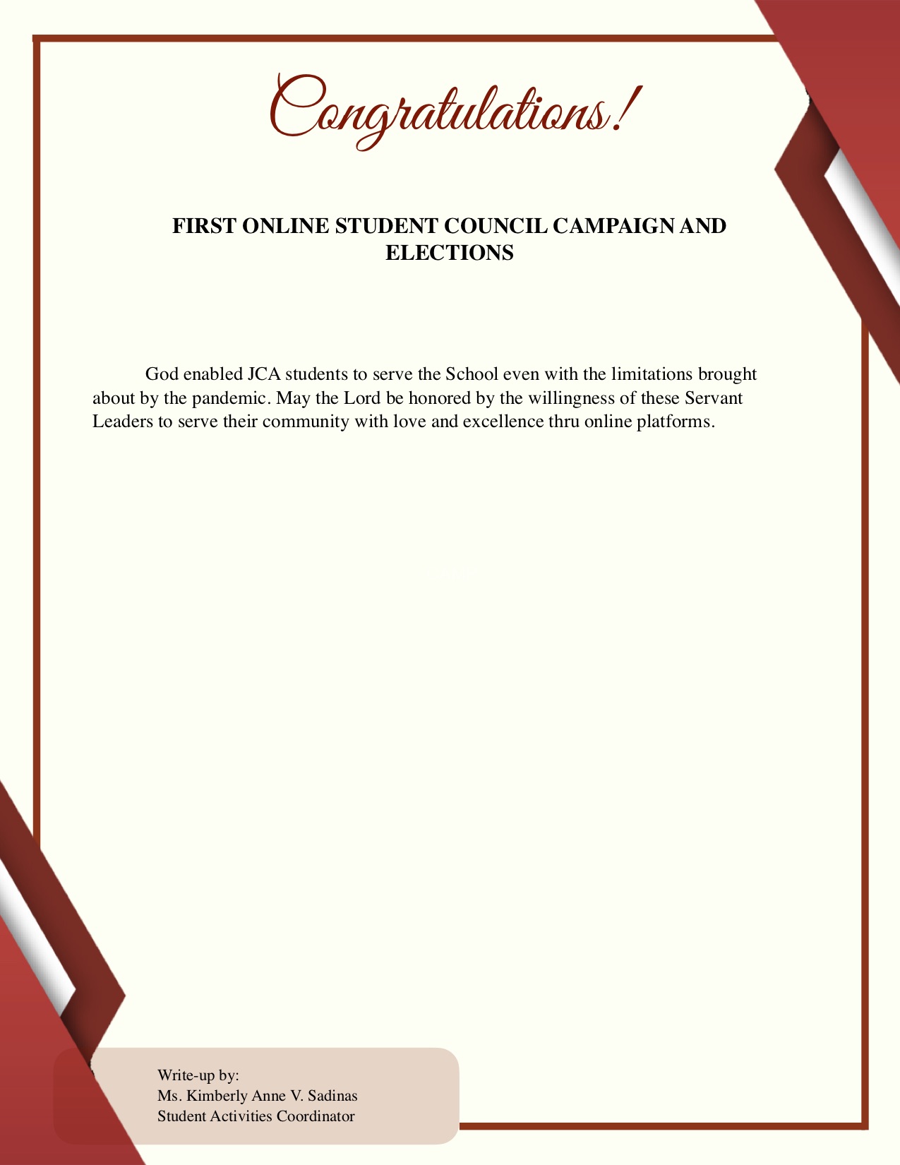 First Online Student Council Campaign and Elections!