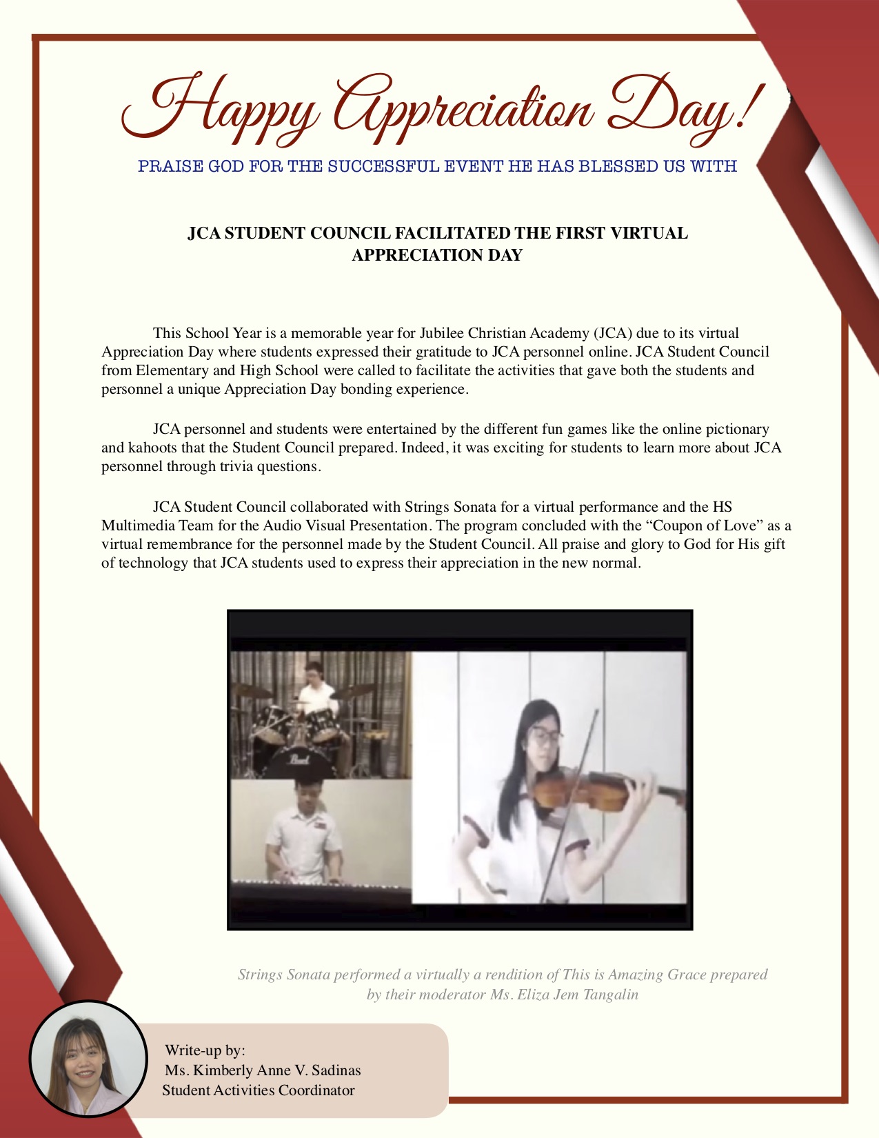 JCA Student Council Facilitated the First Virtual Appreciation Day