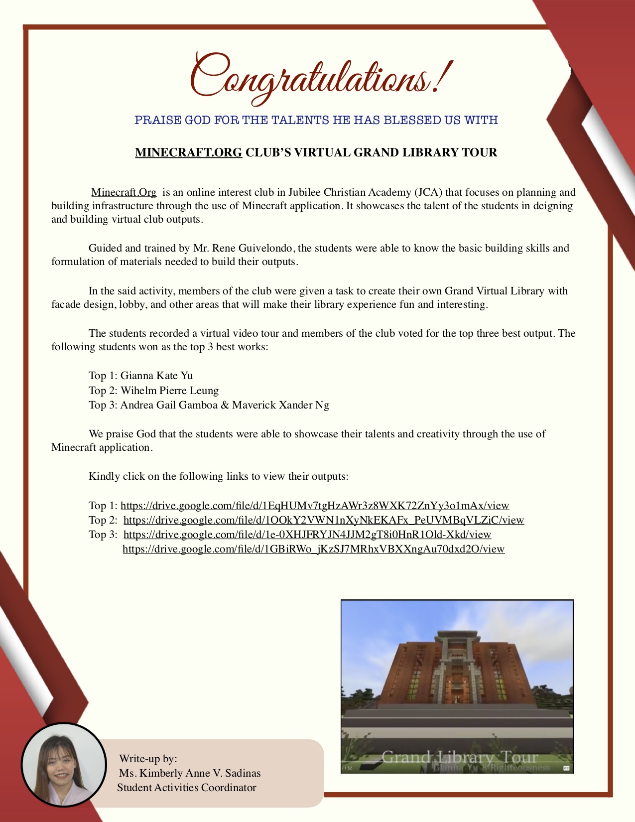 Minecraft.Org Club’s Virtual Grand Library Tour